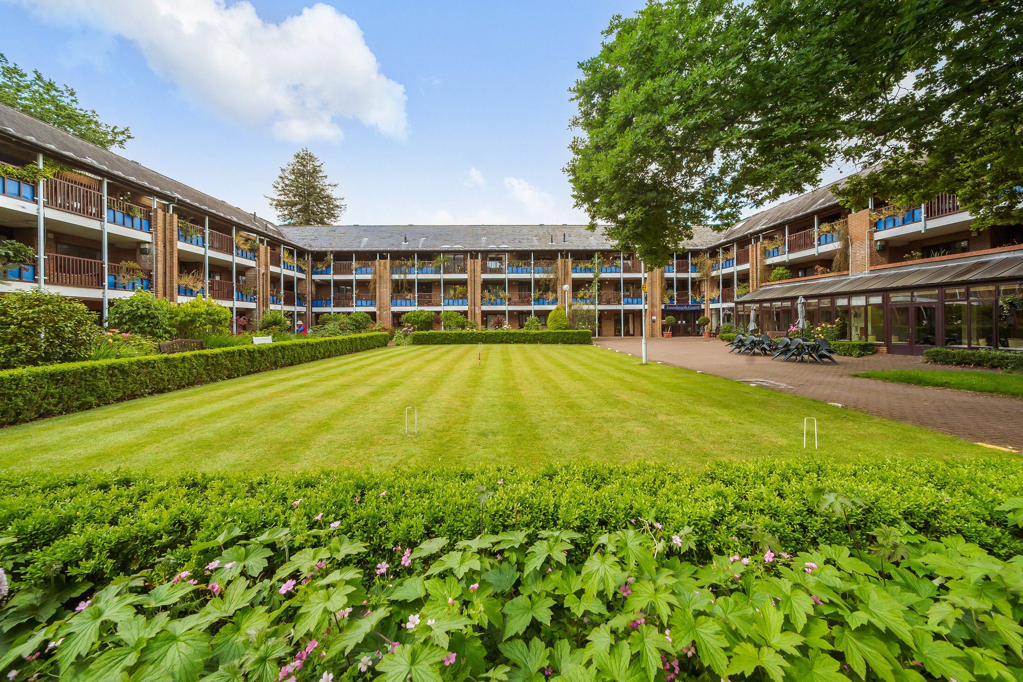 Located in a secluded and peaceful residential area of Reading, Emmbrook Court is home to 46 spacious apartments full of natural light and designed for independent living. You are surrounded by beautiful gardens upkept by gardeners and green-fingered Owners, and bordered by a natural woodland walk, with the trees forming a secluding sound barrier. Emmbrook Court prides itself on its incredible community-feel, with the Owner’s Lounge acting as the main social-hub, with events such as seated yoga, film nights, poetry groups and singing! The Hobbies Room is an inspiring space for you to learn new skills through board games or buzzing art classes and learn to play an instrument in the ukulele club. Relax in the comfort of the Owner’s Conservatory and overlook the Croquet Green, where you’ll find many residents playing a friendly game or competing in the Court tournament. Enjoy the luxury of a Retirement Security property and reserve a seat in the Owner’s Dining room, where fresh 3-course meals are served alongside the ever-growing ‘breakfast mornings’ which are hosted each week by popular demand. A reliable team of Housekeeping Assistants look after all communal areas, as well as completing thorough weekly cleanings of your home. 24-hour on-site staff are a team of familiar, trustworthy faces you can rely on to always be available to help!